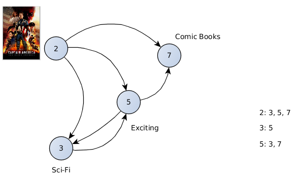 Of course, there’s more to our data than just nodes and connections. Each node is typed (e.g. Video, Genre, Character), and each type has a different set of properties. For example, a video may belong to several genres, which is one type of connection. But it also may depict several characters, which is a different type of connection.